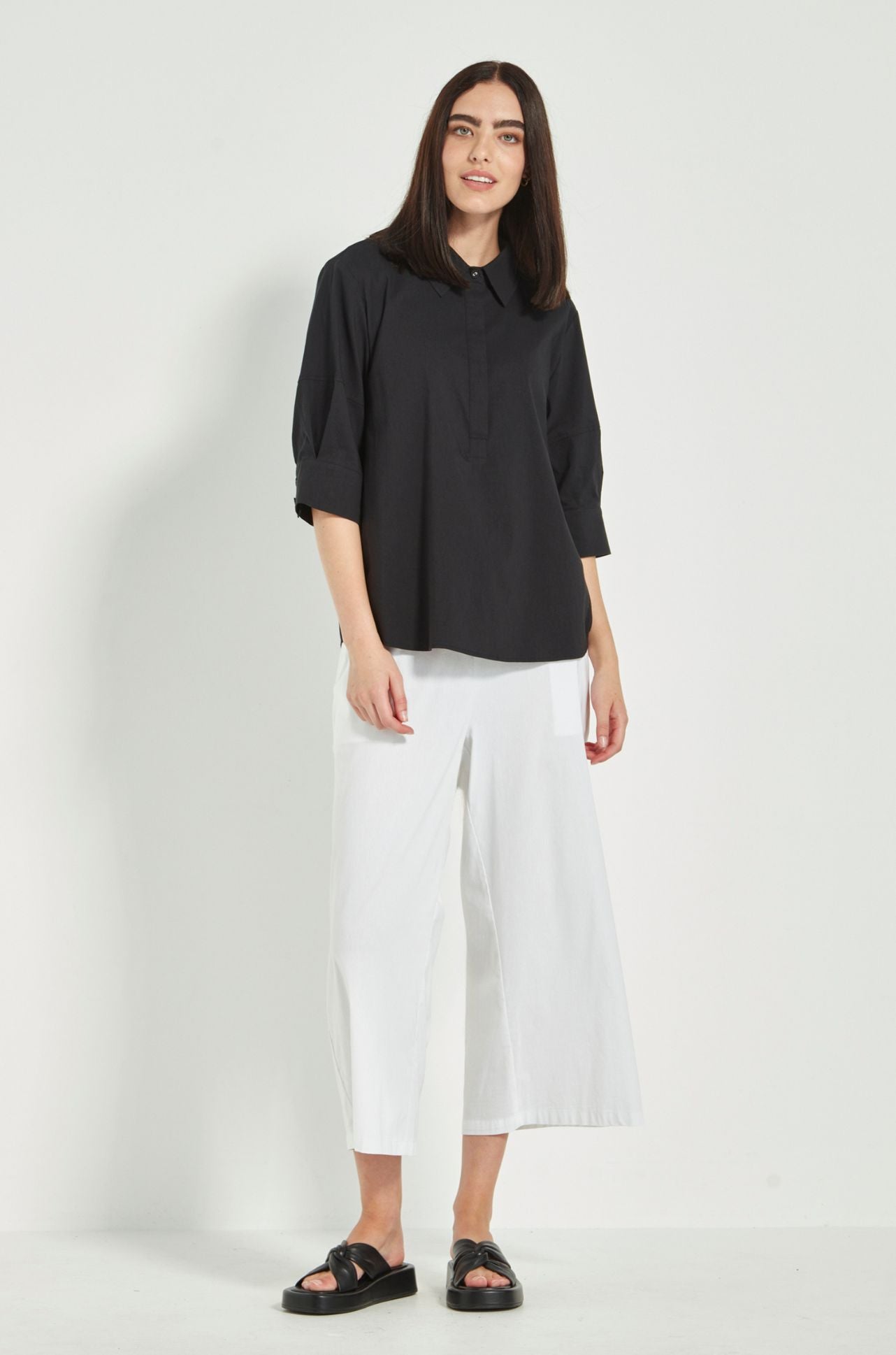 The 'Acrobat Nori Top' from Verge is a fresh new style for the season, featuring a half placket with a collared neckline for a modern touch.