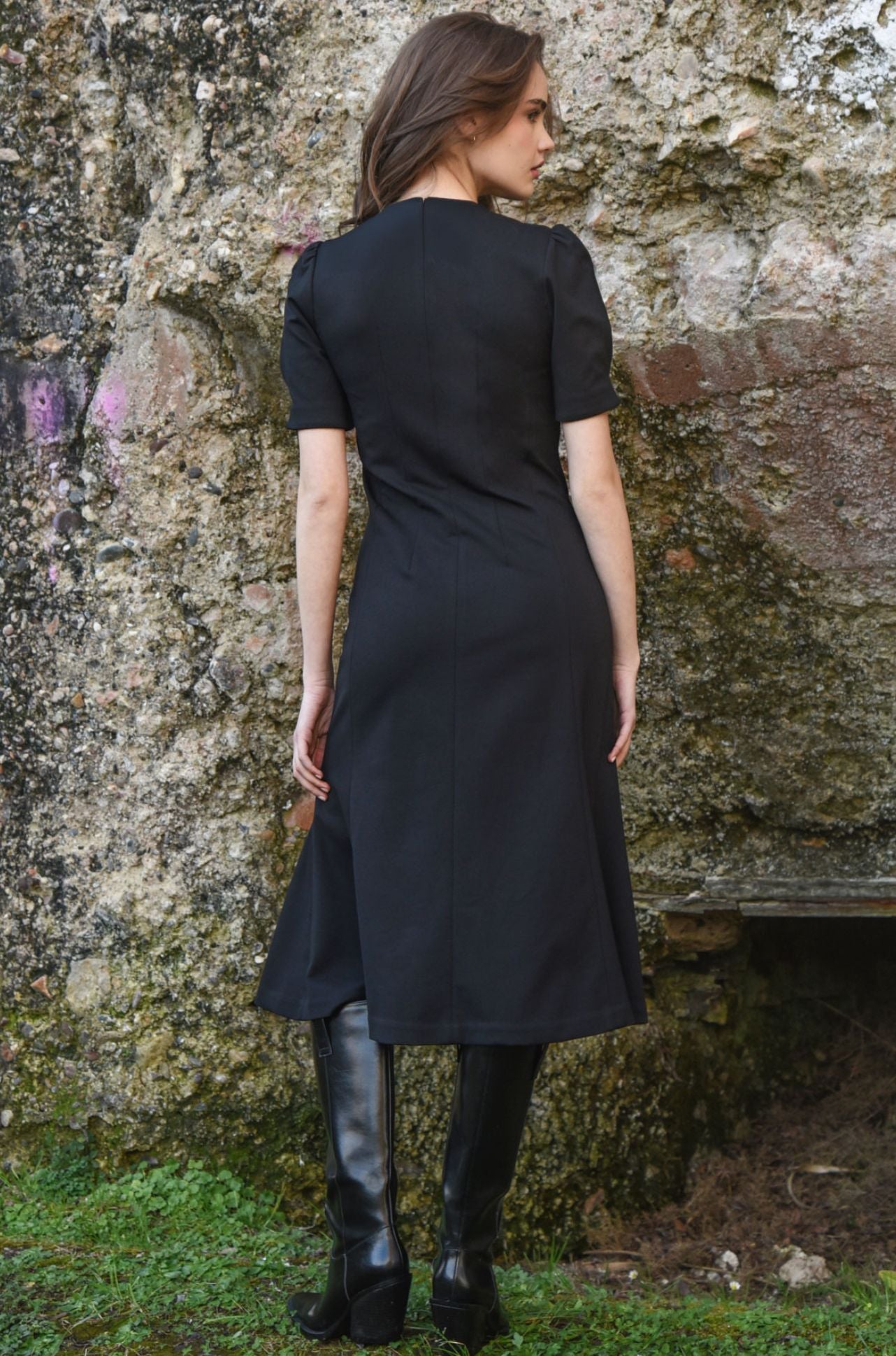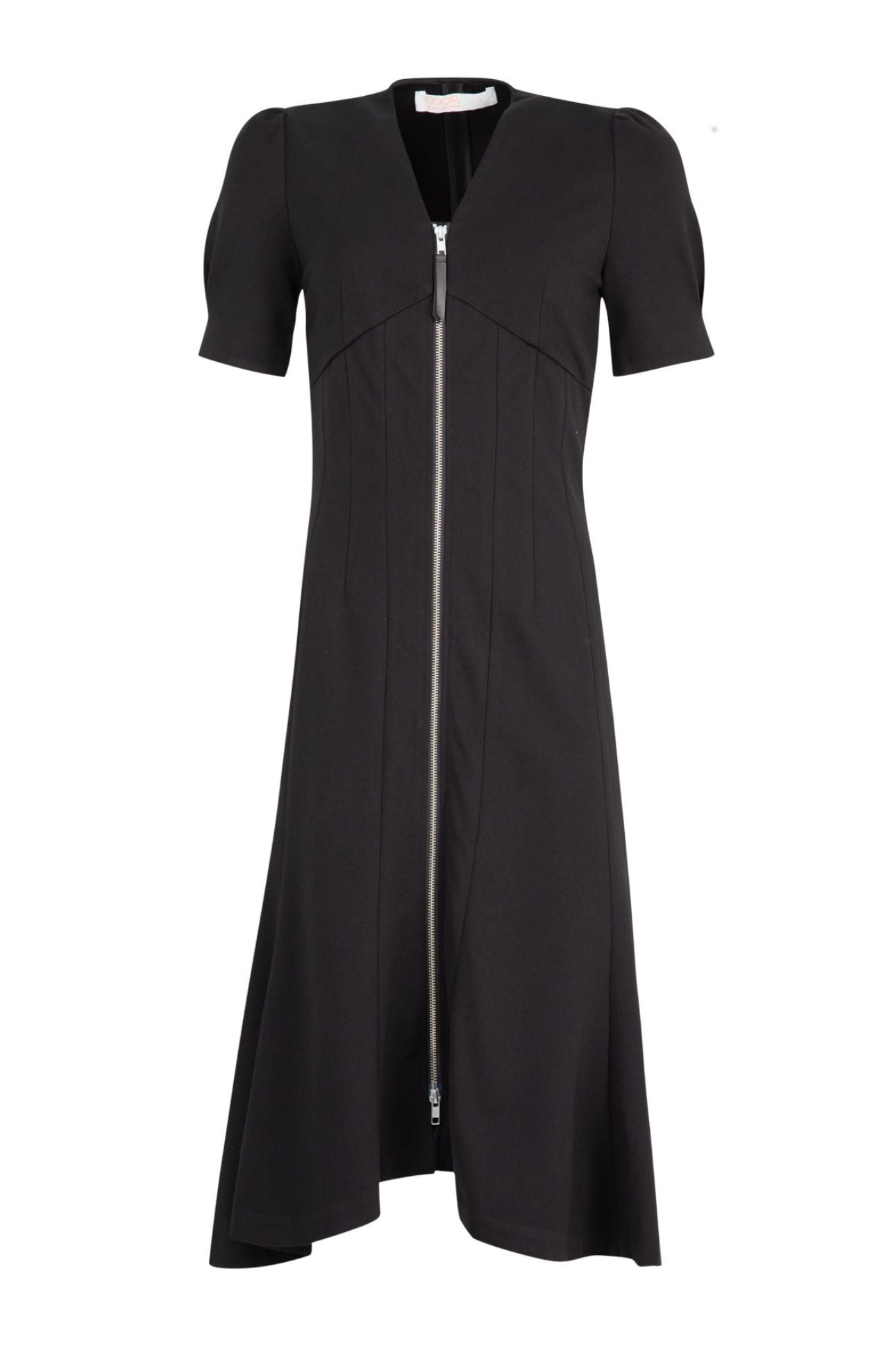 A sleek, modern silhouette defines the ‘Fasten-Ista Dress' from Coop, crafted in 'Stretchy Business' ponte fabric. Featuring a V-neckline, centre-front dual-ended zipper, inverted pleat sleeves, and a paneled fishtail skirt, it combines contemporary tailoring with subtle sculptural movement for a fashion-led, statement finish.