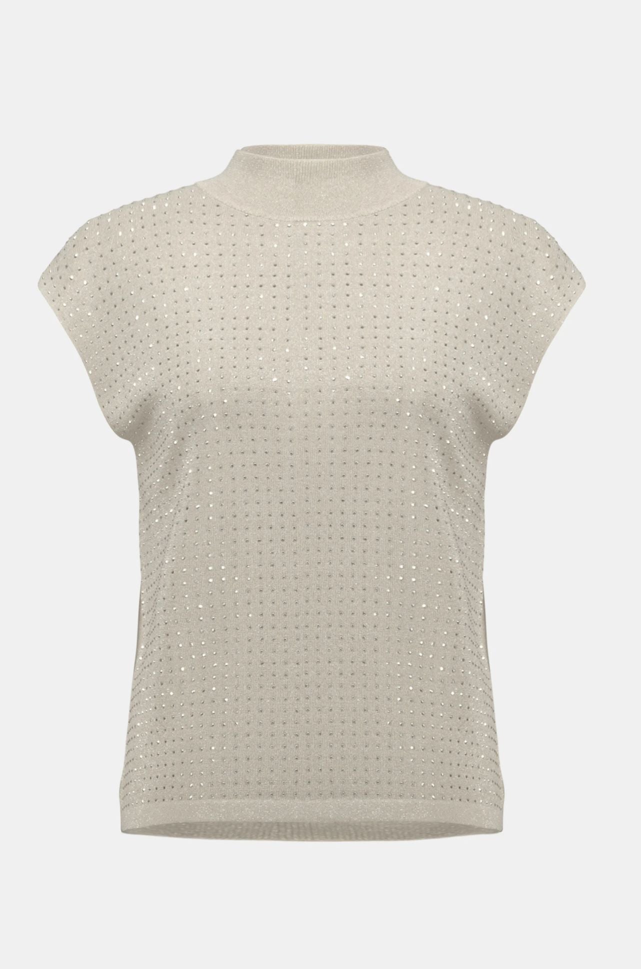 The versatile 'Sweater Knit Sleeveless Pullover with Iron On Detail' from Joseph Ribkoff is a chic addition to your occasion wardrobe, featuring a sophisticated mock neck and elegant iron-on detailing. Crafted from a soft sweater knit in a flattering straight fit, it pairs beautifully with a variety of bottoms for a polished look.