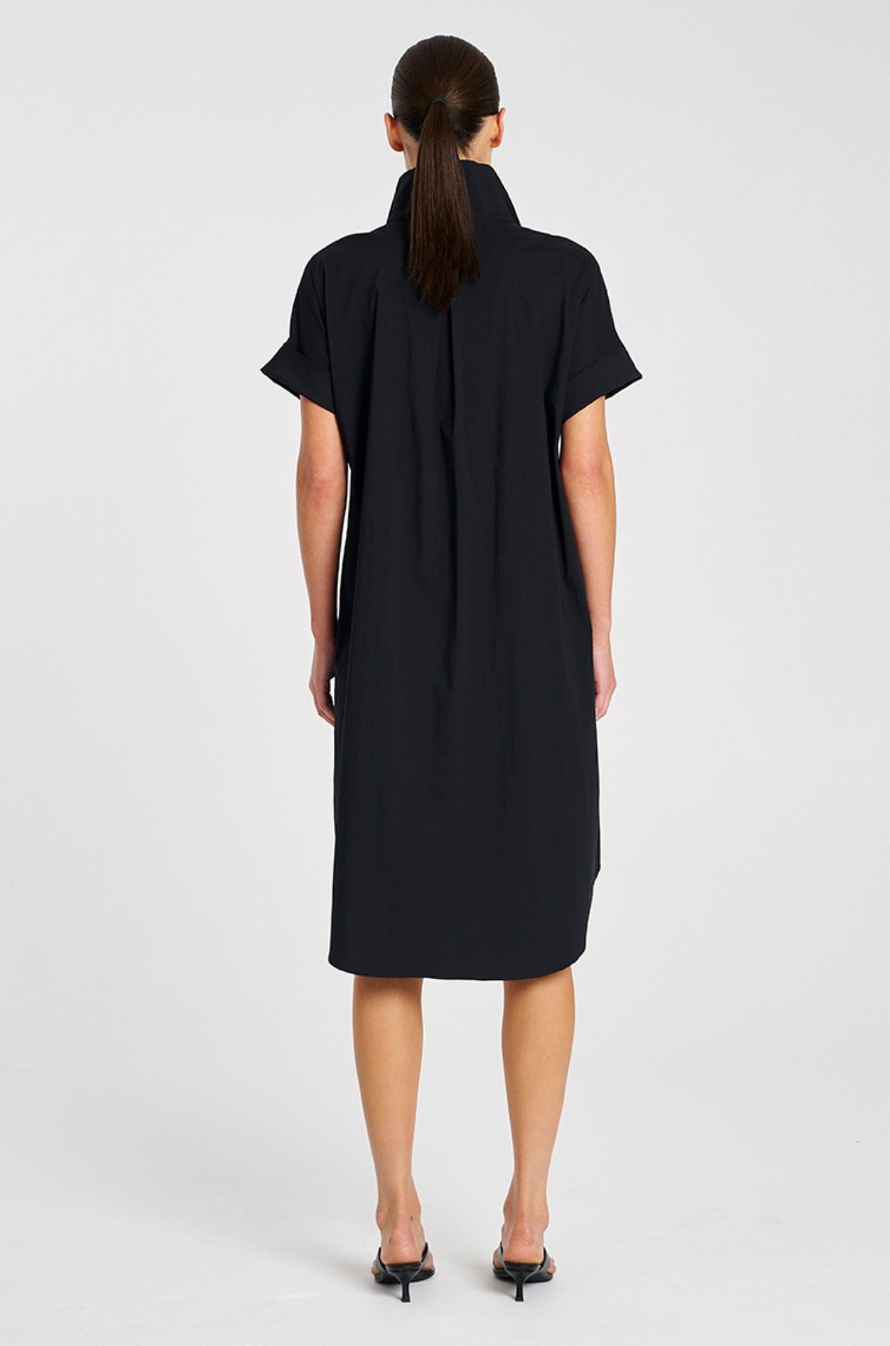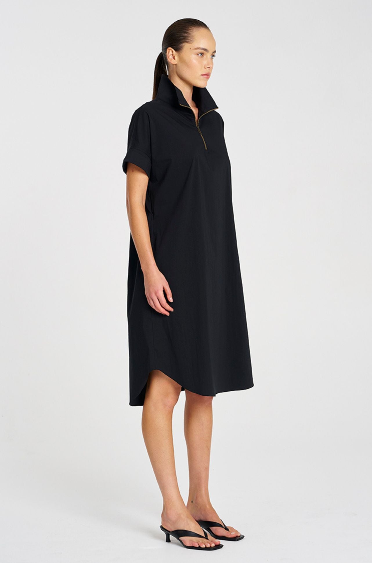 Cut in Mela Purdie's Lightweight Microprene;  A crisp, cotton rich fabric with high stretch and a polished finish. The 'Half Zip Dress' from Mela Purdie features a zip through the collar and curved hemline.