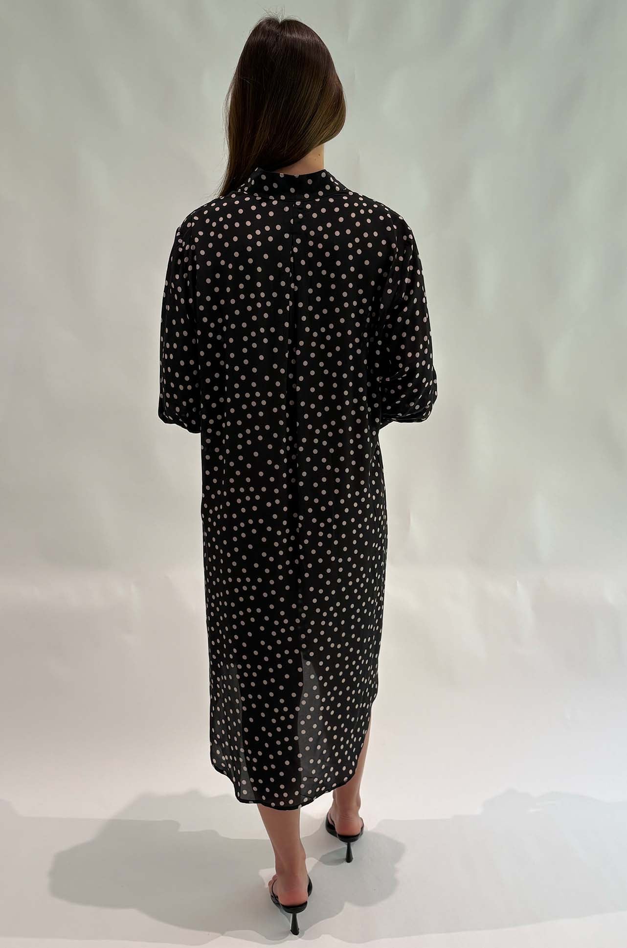 Crafted in Mela Purdie's mid-weight, soft washed Silk Crepe De Chine, in the effortless Scattered Spot Print, an easy to wear print for all occasions. The 'Resort Dress' from Mela Purdie offers a relaxed fit silhouette and stand collar, this is a wardrobe essential.