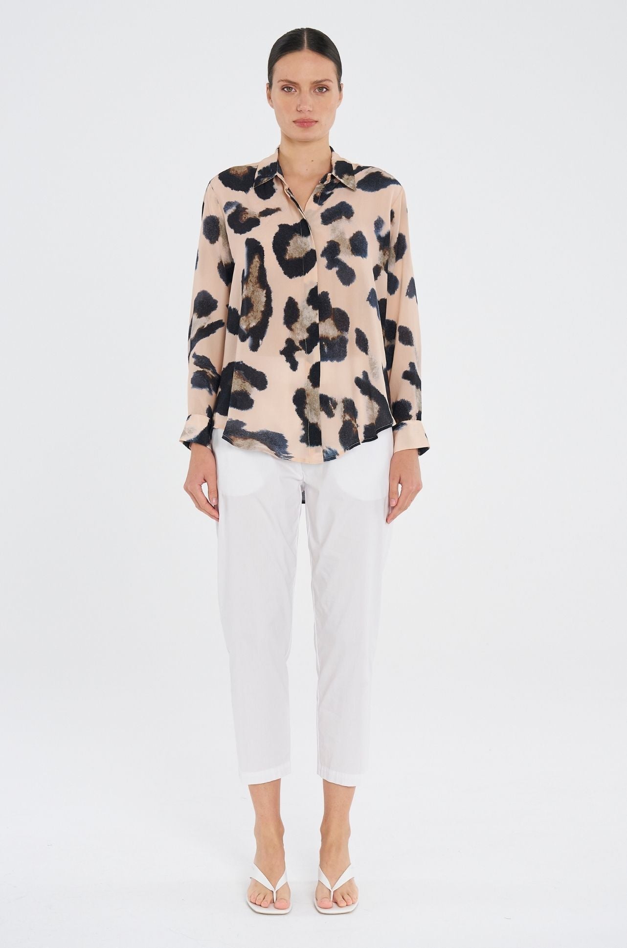 The 'Soft Shirt' is a timeless, classic silhouette crafted in Mela Purdie's mid-weight, soft washed Silk Crepe De Chine, in the Blurr Silk Print, a statement print perfect for any occasion.