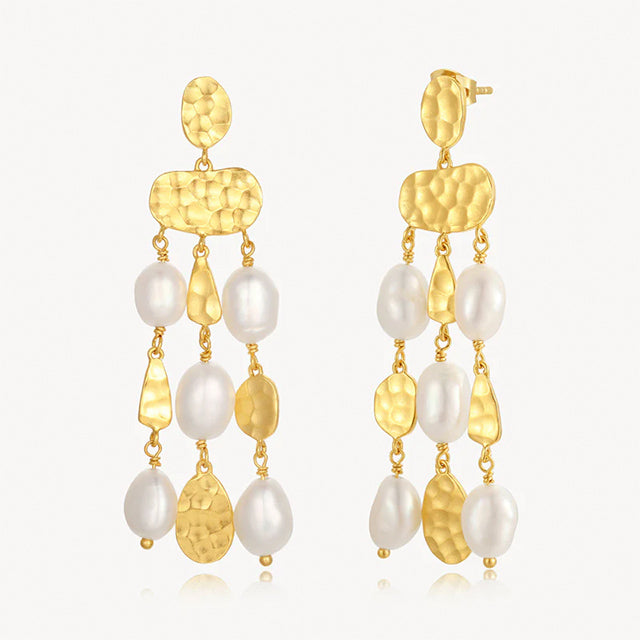 Expertly handcrafted with captivating drops of Baroque Freshwater Pearls and hammered accentst The 'Tide Earrings' from Nicole Fendel are a statement earring adding a touch of glamour to any outfit. Featuring our signature hammer finish.
