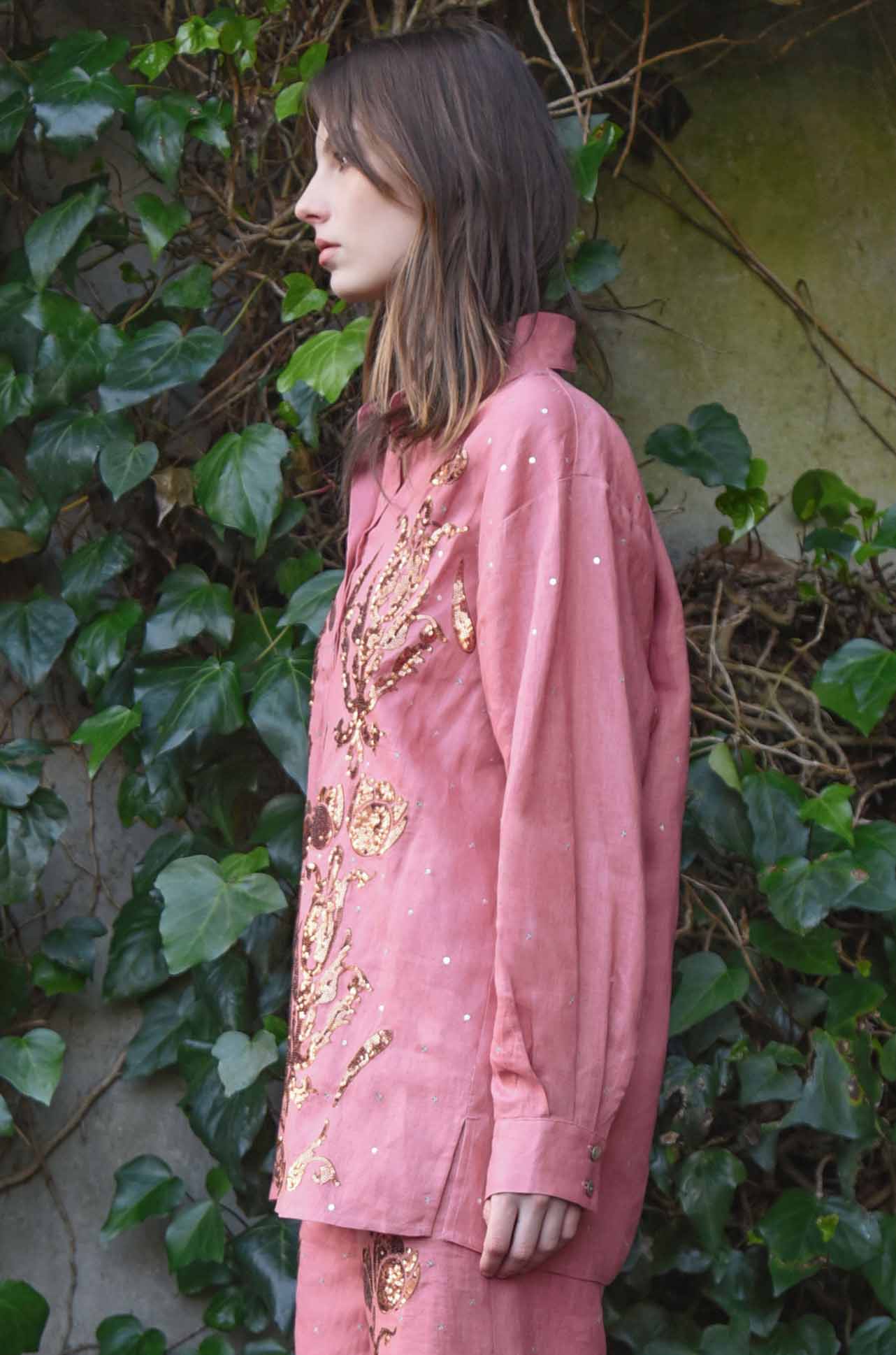 Adorned with glimmering sequins and diamantes, the ‘Drift Away’ shirt in ‘Linen the Good Life’ linen brings effortless shimmer to a relaxed silhouette. Its longline cut and button-through front create a classic shape, while the sequin and diamante embellishment adds a touch of playful sparkle. Pair with the matching 'Walk and Talk' pant for a relaxed yet show-stopping look.