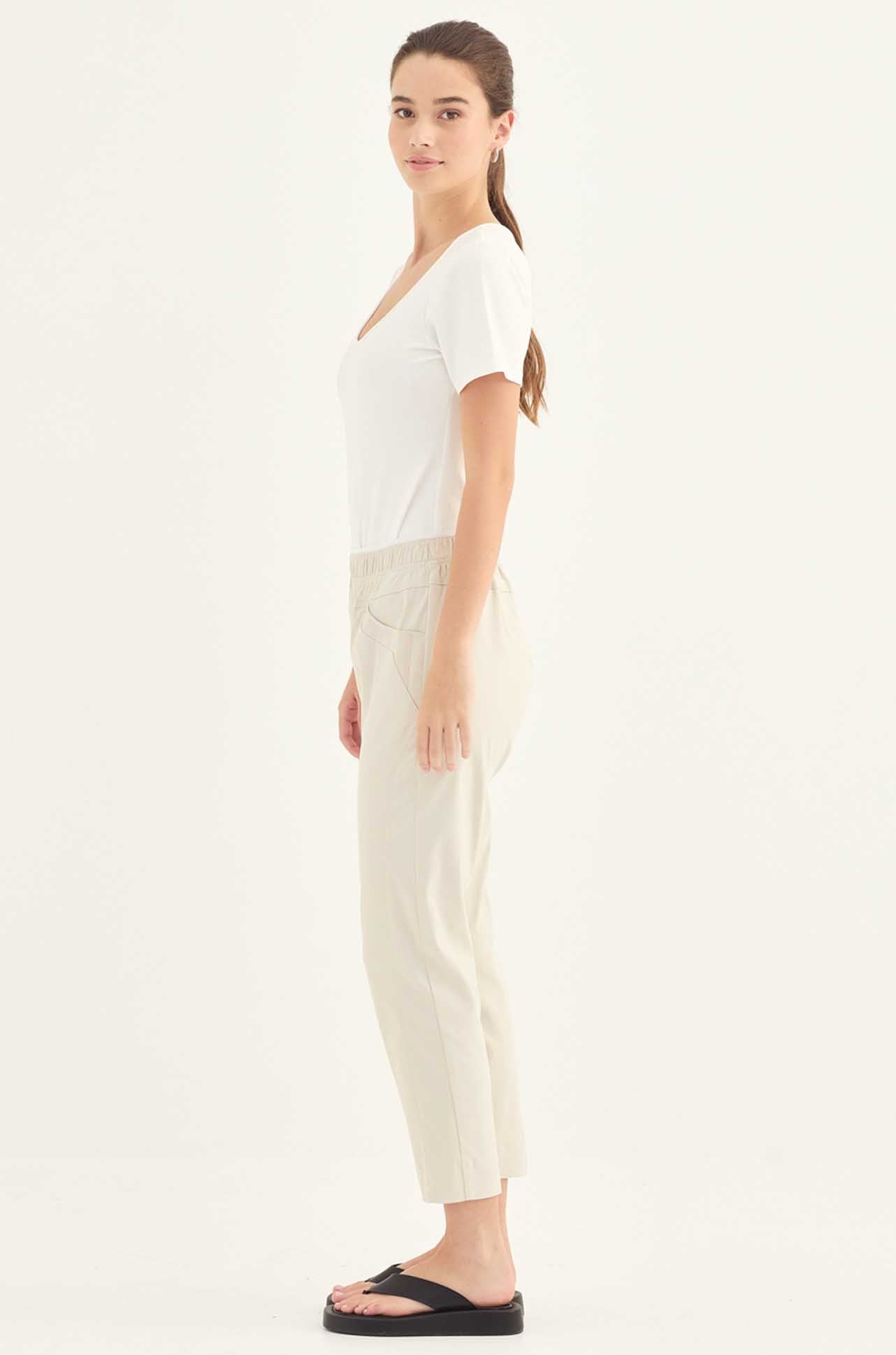 Slip into comfort with the 'Colt Pant' by Verge — a super stretch, straight-leg pant designed for effortless style. The elasticated waistband and faux pocket detailing give a smooth, modern finish, while the ankle-length cut keeps the look clean and versatile. Perfect for workdays or weekends.